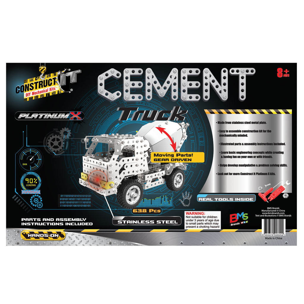 669pc Construct IT Platinum-X DIY Cement Truck Toy w/ Tools Kit Kids 8y+