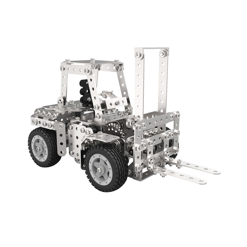 This Fork Lift from Construct IT is truly amazing! It is part of the Platinum X line so that means it uses real stainless-steel pieces. This makes construction fun, but it also makes your child feel like a real engineer or mechanic as they bring this Fork Lift to life. They get to use real-life tools which are included in the box to make the Fork Lift and each step of the construction process is broken down into easy-to-follow instructions that will help kids learn the basics of engineering as they work.