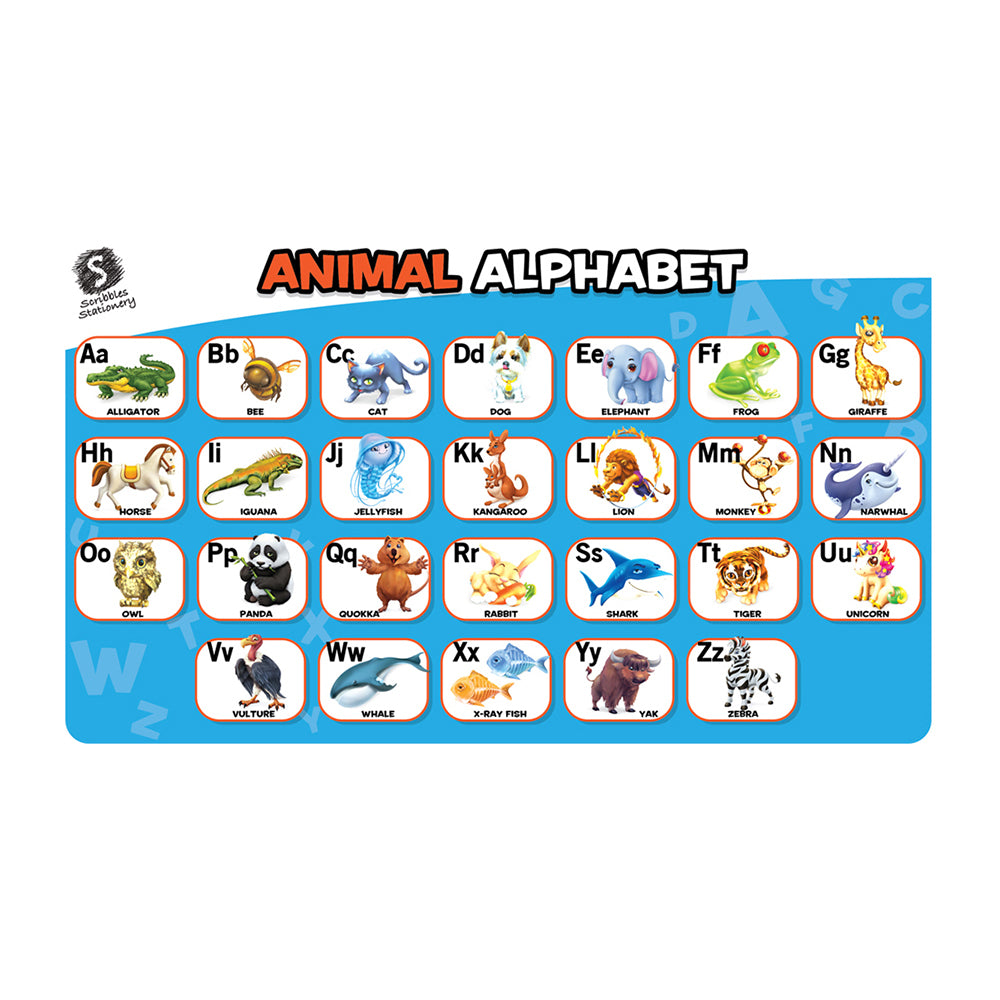 This contains four fun-filled placemats and each one has its own theme. The Colours placemat features six colours and each one has fun items to represent it such as a red train and a blue whale. The Shapes placemat will help your child become more familiar with shapes such as a round cookie and a rectangle cookie. The Animal Alphabet placemat is great! It not only teaches them A-Z, but each letter is also represented by an animal starting with A for alligator and ending with Z for Zebra. The final placemat is about First Words, apple, dog, tree, and more are here with fun pictures too.