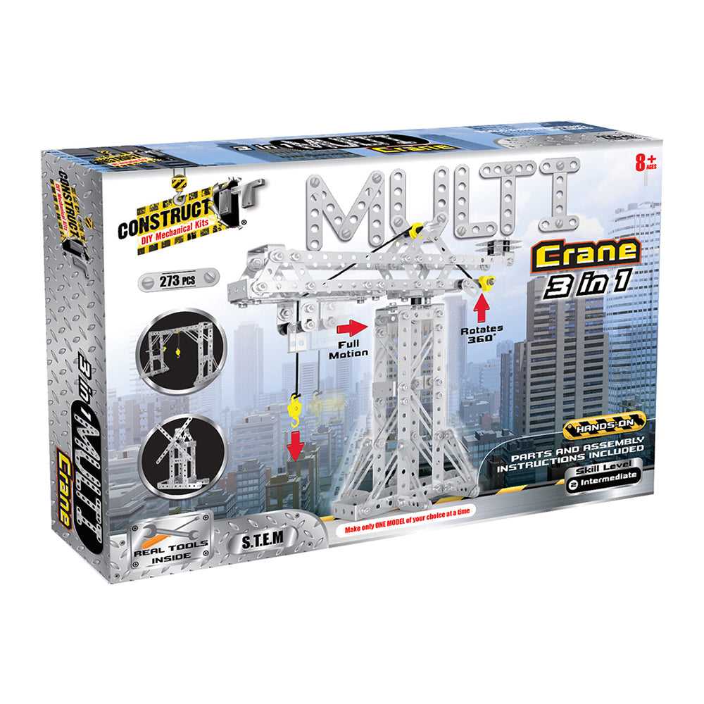 273pc Construct IT DIY 3-in-1 Multi Crane Toy w/ Tools Kit Kids 8y+