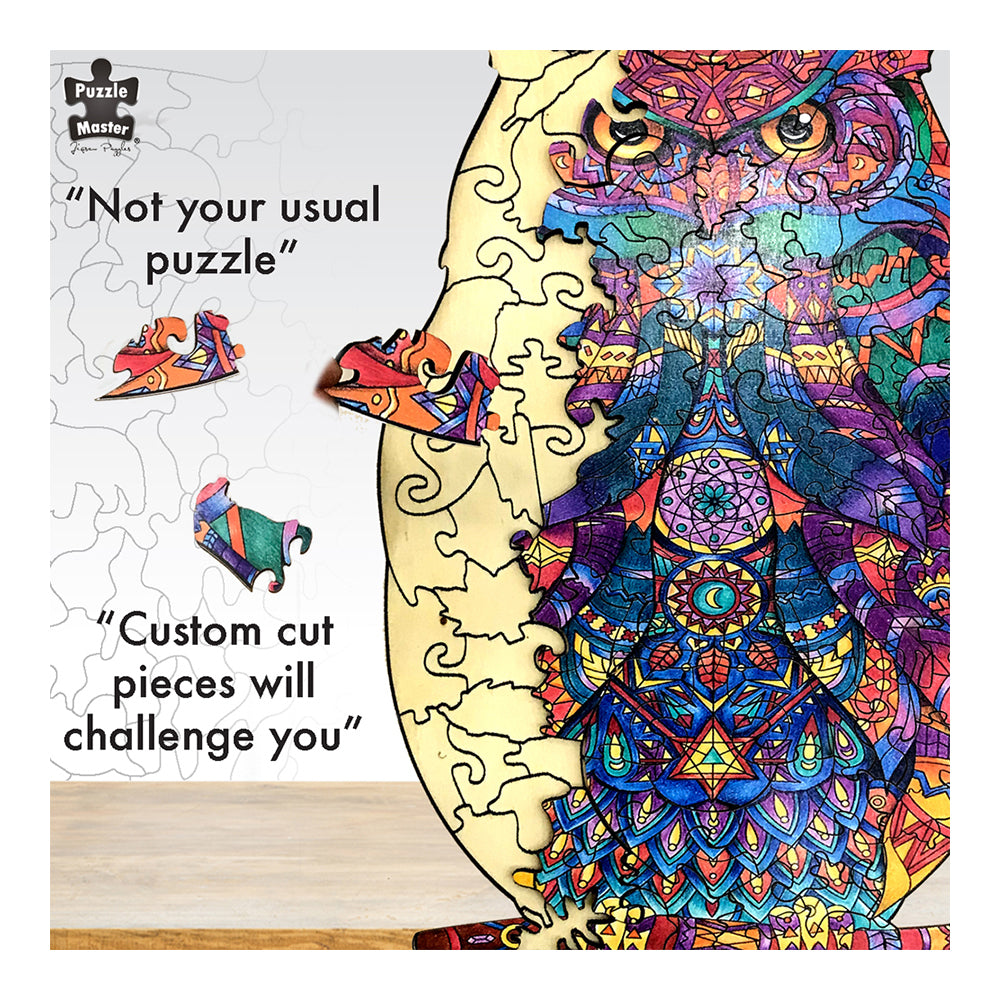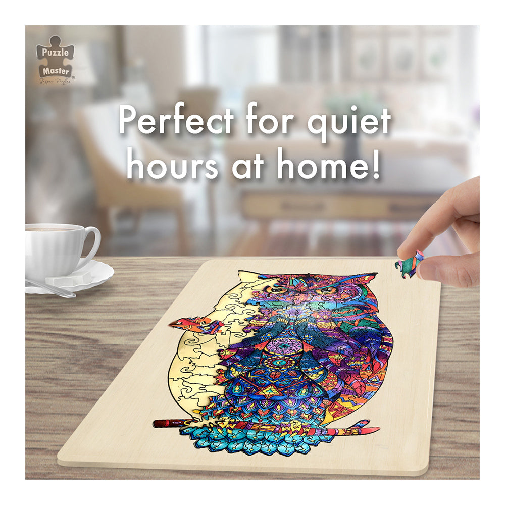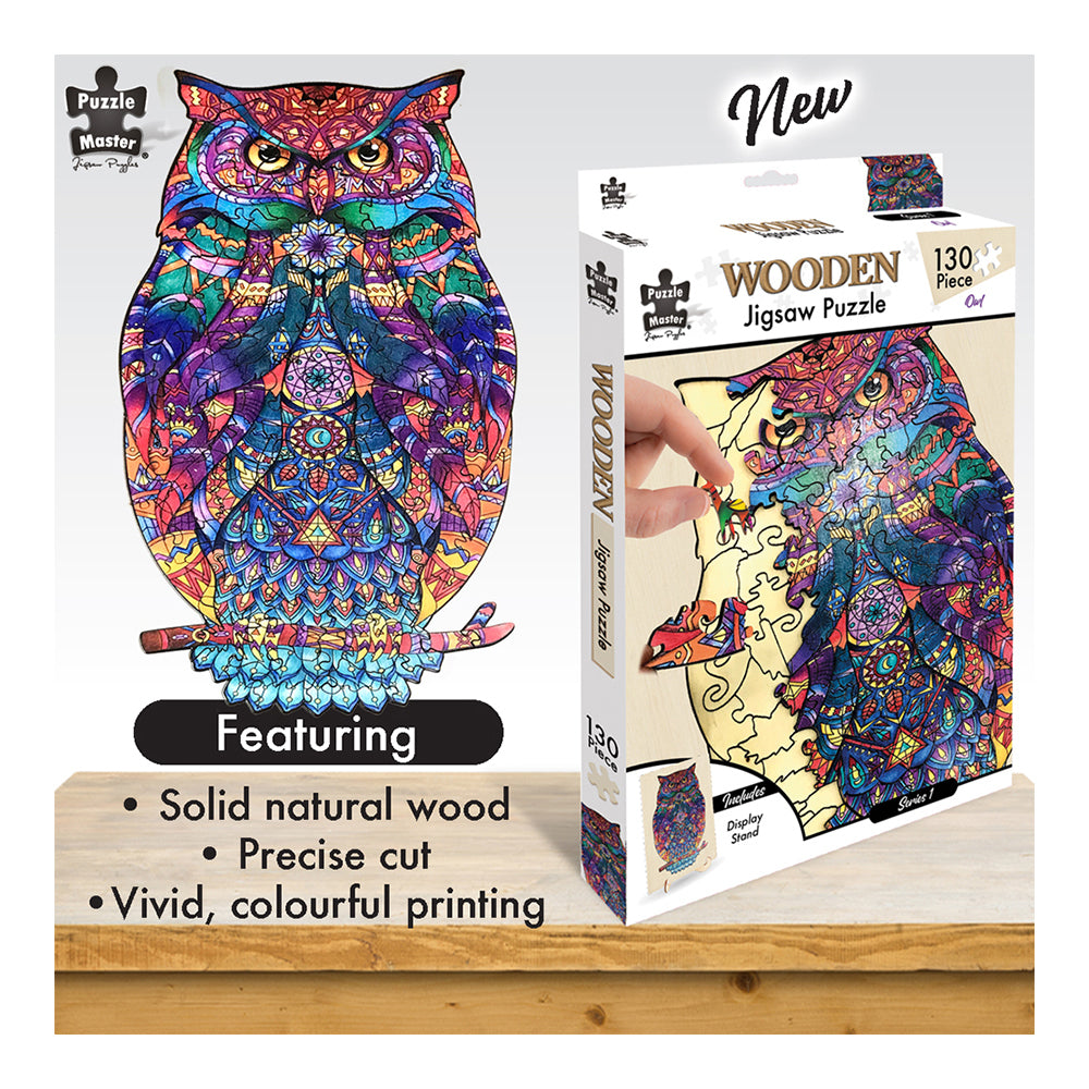 This Puzzle Master 130 Piece Owl Wooden Jigsaw Puzzle is going to be something that a puzzle enthusiast has a fantastic time with. While 130 pieces may not sound like much, the design of this puzzle makes this a real fiendishly challenging, but still fun jigsaw puzzle.