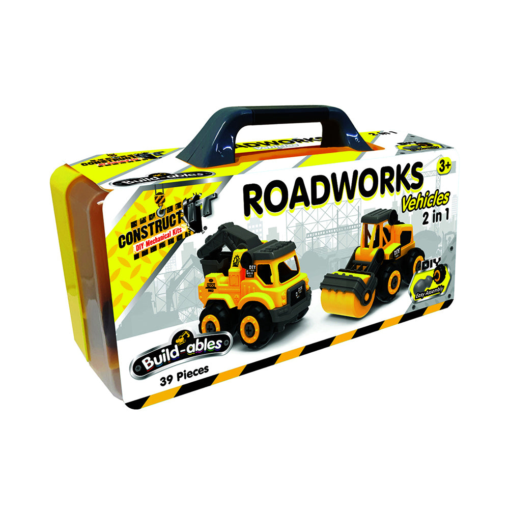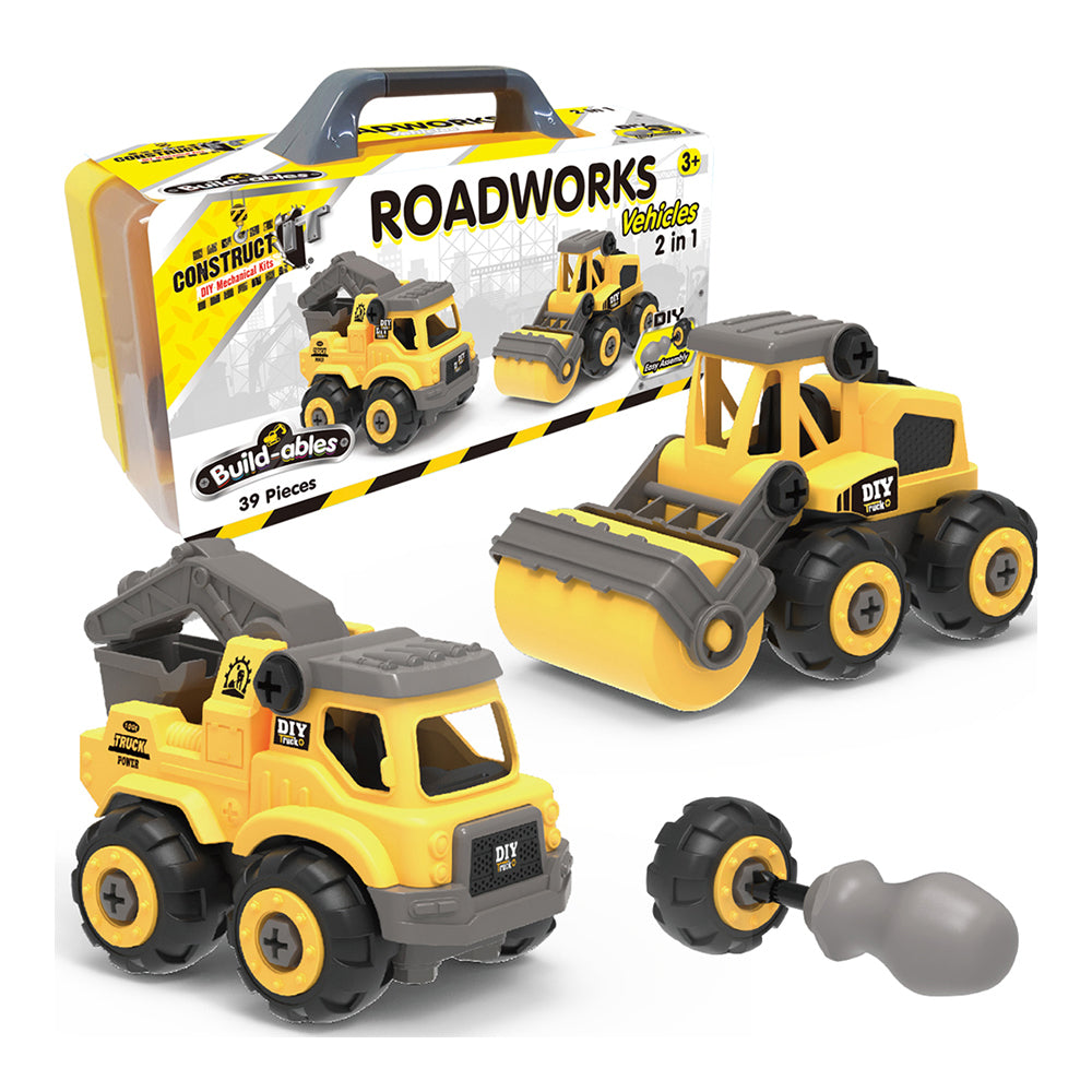 39pc Construct IT Buildables 2in1 Roadworks Vehicle Set w/ Case Kids 3+ YLW