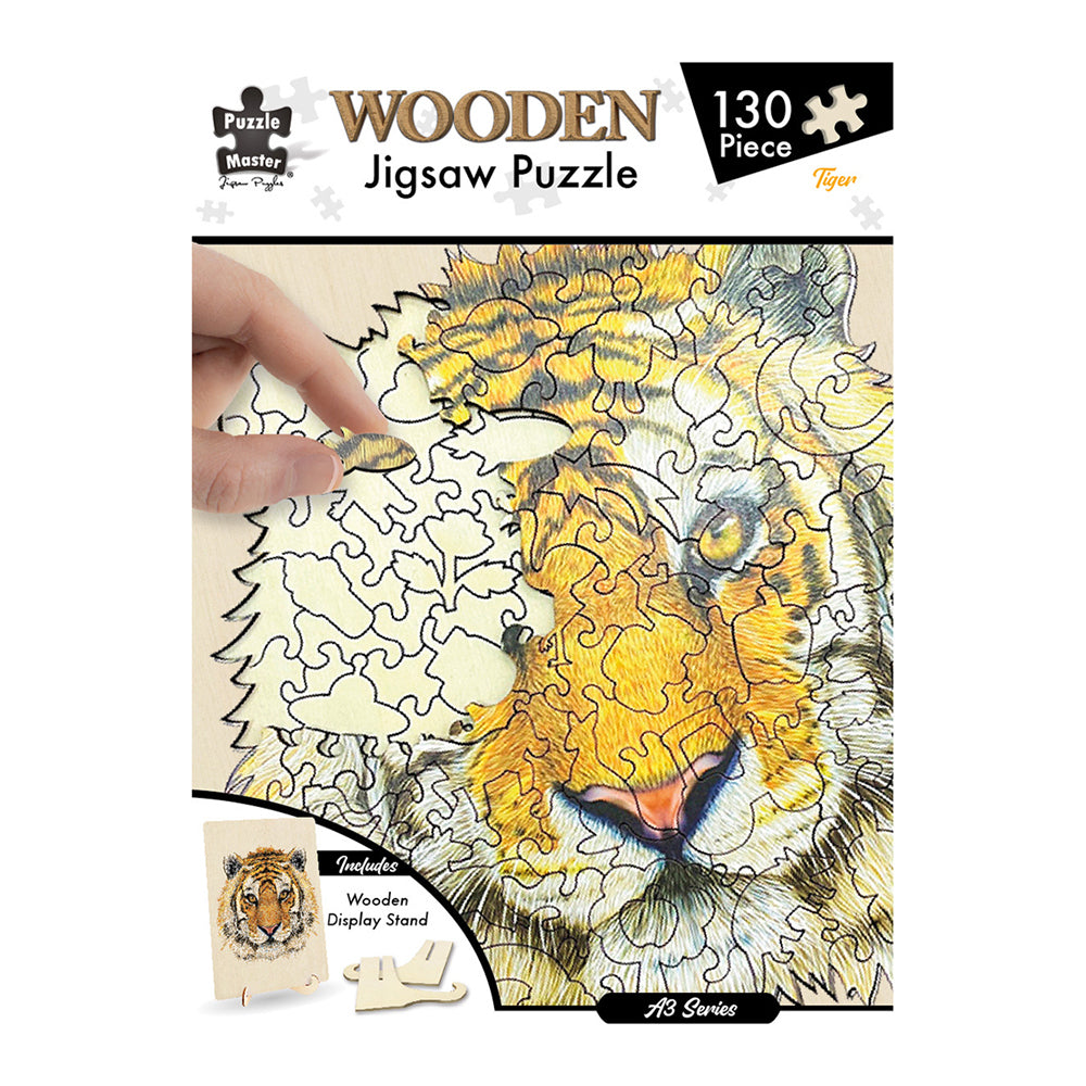130pc Puzzle Master A3 Shaped Wooden Jigsaw w/ Stand Set Kids 8y+ Tiger