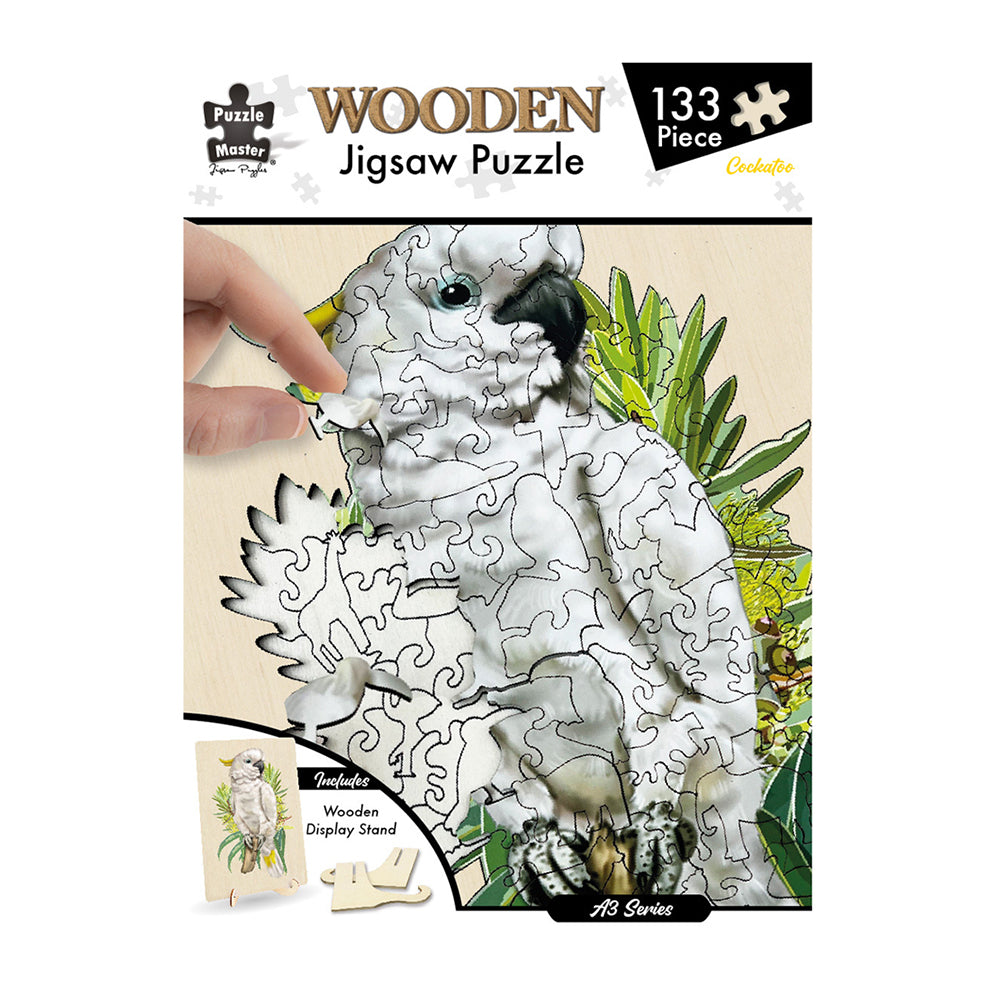 133pc Puzzle Master A3 Shaped Wooden Jigsaw w/ Stand Set Kids 8y+ Cockatoo
