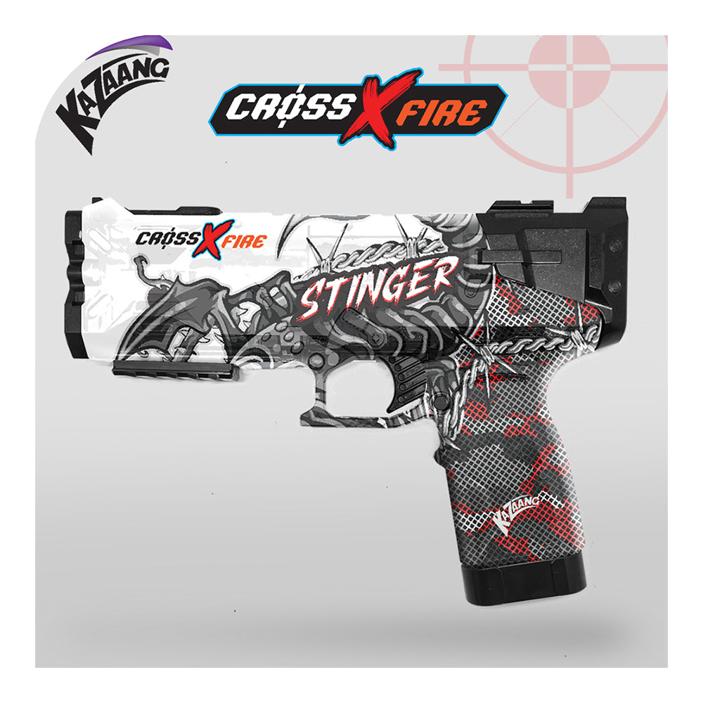 Prepare to step into the world of aquatic combat like never before! Our latest creation, the CrossXFire AquaZ, is the ultimate water gun for all aspiring warriors out there. With a design inspired by The Stinger and bold animated graphics featuring a striking red, black, and white color scheme, you're in for an adventure of epic proportions!