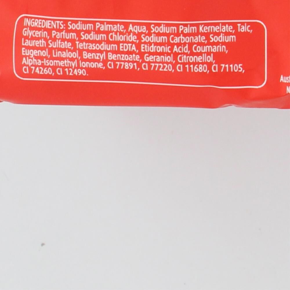 Sodium Palmate, Aqua, Sodium Palm Kemelate, Talc, Glycerin, Parfum, Sodium Chloride, Sodium Carbonate, Sodium Laureth Sulfate, Tetrasodium EDTA, Etidronic Acid, Coumarin, Eugenol, Linalool, Benzyl Benzoate, Geraniol, Citronellol, Alpha-Isomethyl Ionone, CI 77891, CI 77220, CI 11680, CI 71105, CI 74260, CI 12490.