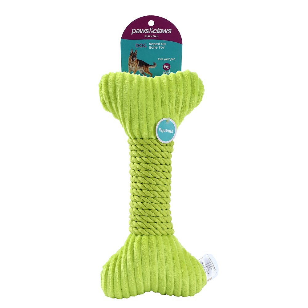Paws & Claws 30x14cm Roped-Up Plush Bone Dog Toy - Green