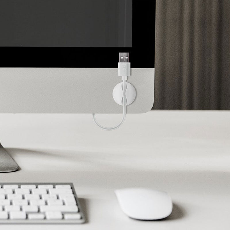 The flexible cable guide secures cables within reach and prevents e.g. charging cables or other USB connections from slipping behind and under the desk. Also perfect for routing cables under the desk.