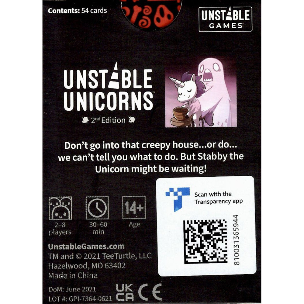 Don't be a Halloweenie! This expansion pack is dripping with your favorite horror tropes and spooks (and of course, lots of unicorns!). This pack includes new Character cards, Magic cards, Upgrade cards, and Nightmare Downgrade cards. So don't go into that creepy house...or do...we can't tell you what to do. But Stabby the Unicorn might be waiting!