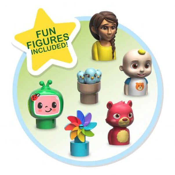 - 53-piece block set includes six CoComelon themed figures and brightly colored blocks. The large blocks are great for helping little hands build dexterity.
