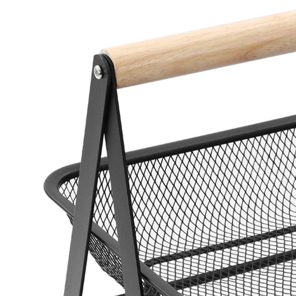 Beautifully crafted, our mesh wire storage trolley features a seamless design with a stylish wooden handle and wheels for easy movement.