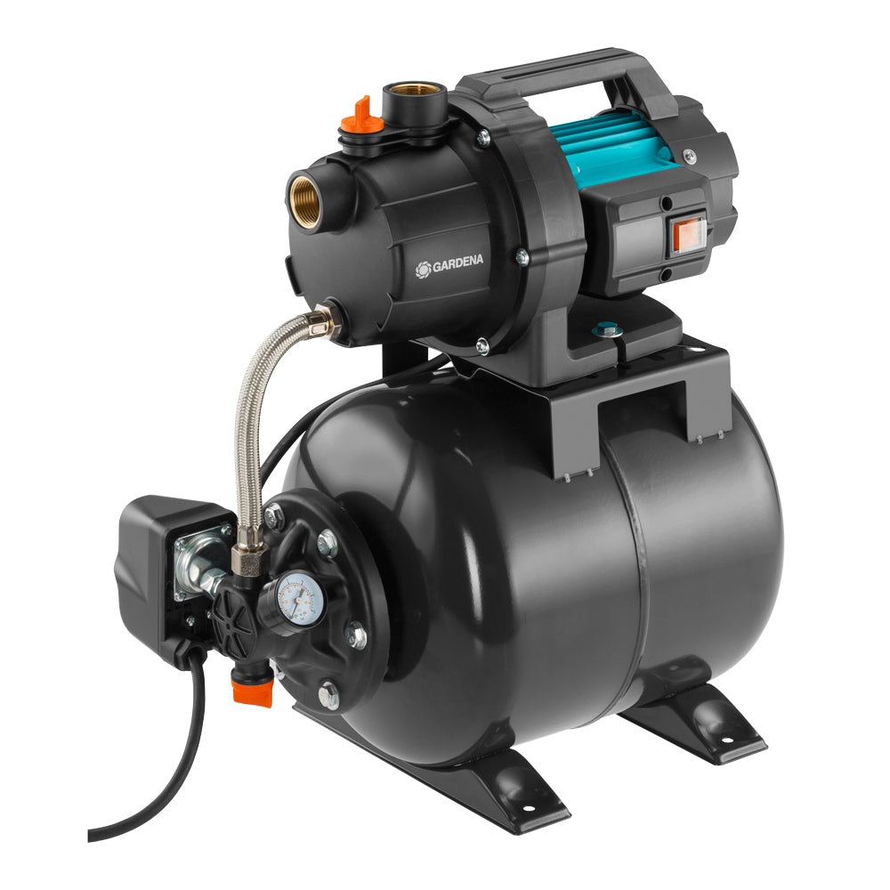 The GARDENA Pressure Tank Unit 3000/4 is your solution for automatic water supply in the home and garden. Quick and easy to install, this stationary pump distributes water from rain barrels, wells or cisterns to where it’s needed around the house. You could save water, reduce water bills and be more environmentally friendly by using the pump to transfer water to your garden tap, washing machine or for flushing your toilet. The 600W motor can pump up to 3000 liters of water per hour from 7m deep. The GARDENA Pressure Tank Unit 3000/4 is designed to be easy to install, compact and sustainable. The 19 liter tank, made from high quality EPDM membrane, is durable,long lasting and ensures short pump phases. The electric pump operates efficiently and safely with a built-in automatic thermo stop safety switch function in case of an overheating motor. The extra filling opening ensure fast and easy installation. The in-built pressure gauge allows you to keep an eye on the performance of the pump, there is also a simple on/off switch. Before the first frost sets in, simply drain the pump with the aid of the drain screw. Robust brass threads are perfect for all kind of fixed installations. Saltwater, aggressive or easily flammable substances must not be pumped, nor must foodstuffs. Engineered to last with quality materials and designed to be low maintenance. The GARDENA Pressure Tank Unit 3000/4 is an ideal purchase if you are looking for an efficient way to distribute and use water for many household and outdoor uses.