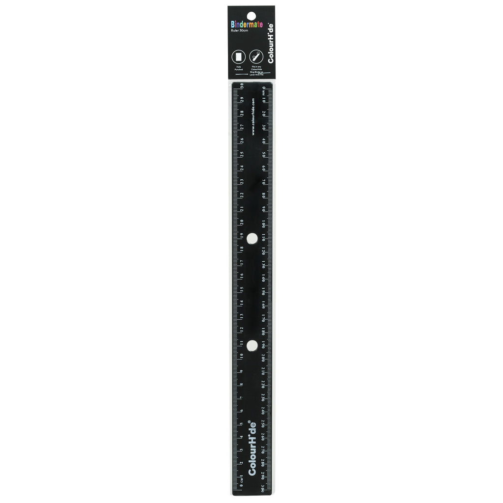 6pc Colourhide 30cm Bindermate Ruler For Ring Binder - Black