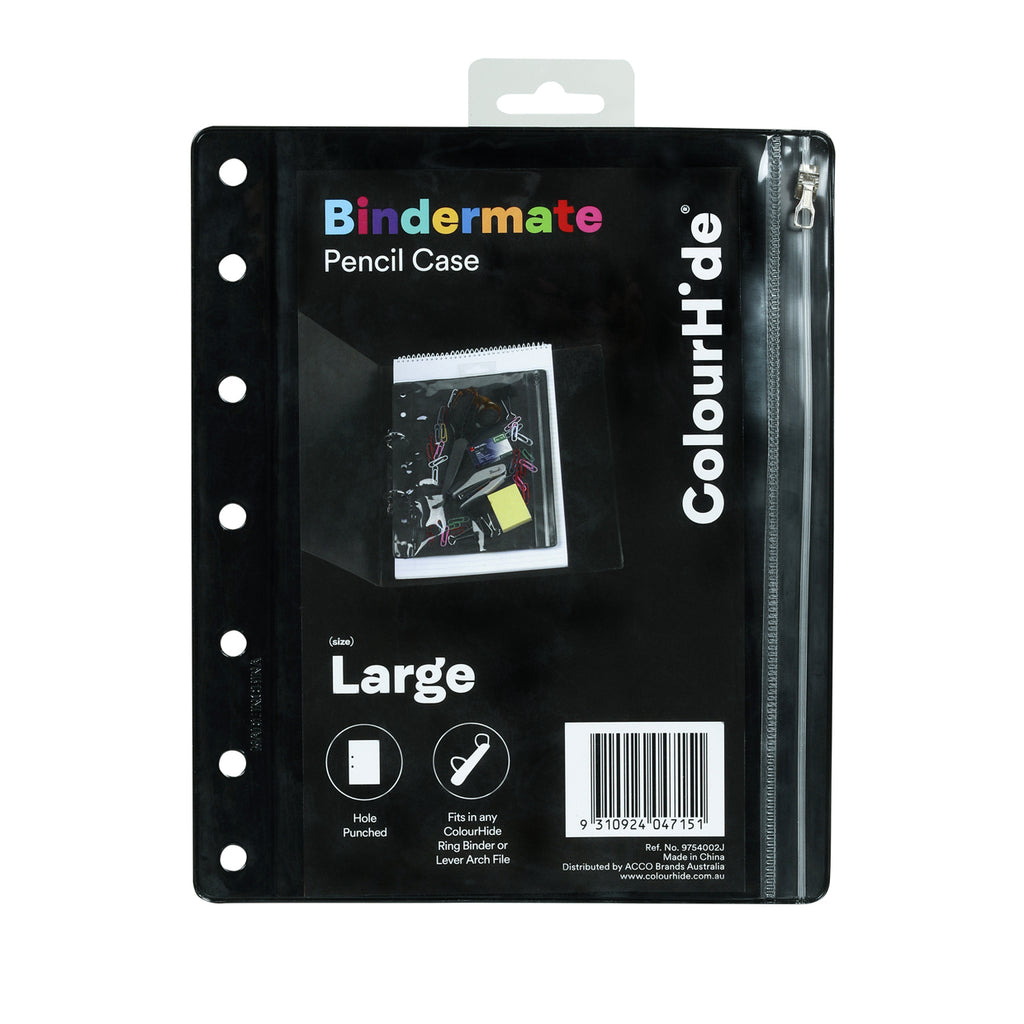 6pc Colourhide Bindermate A4 Pencil Case Insert For Binders Black Large