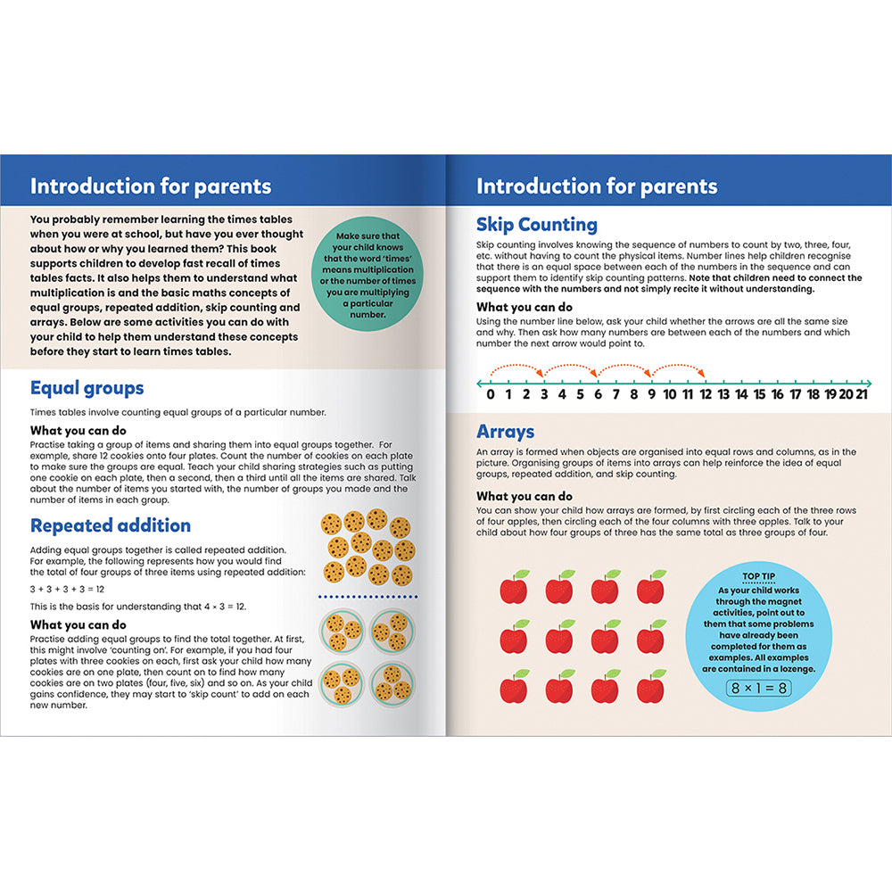The My FUN Times Tables Magnets book with two sheets of magnets provides a fun, hands-on and visual way to help your child learn and practise their times tables to 12. The book introduces key concepts such as the language and the layout of times tables. The magnet activities allow your child to apply what they have learned and build their times tables as they master multiplication facts.