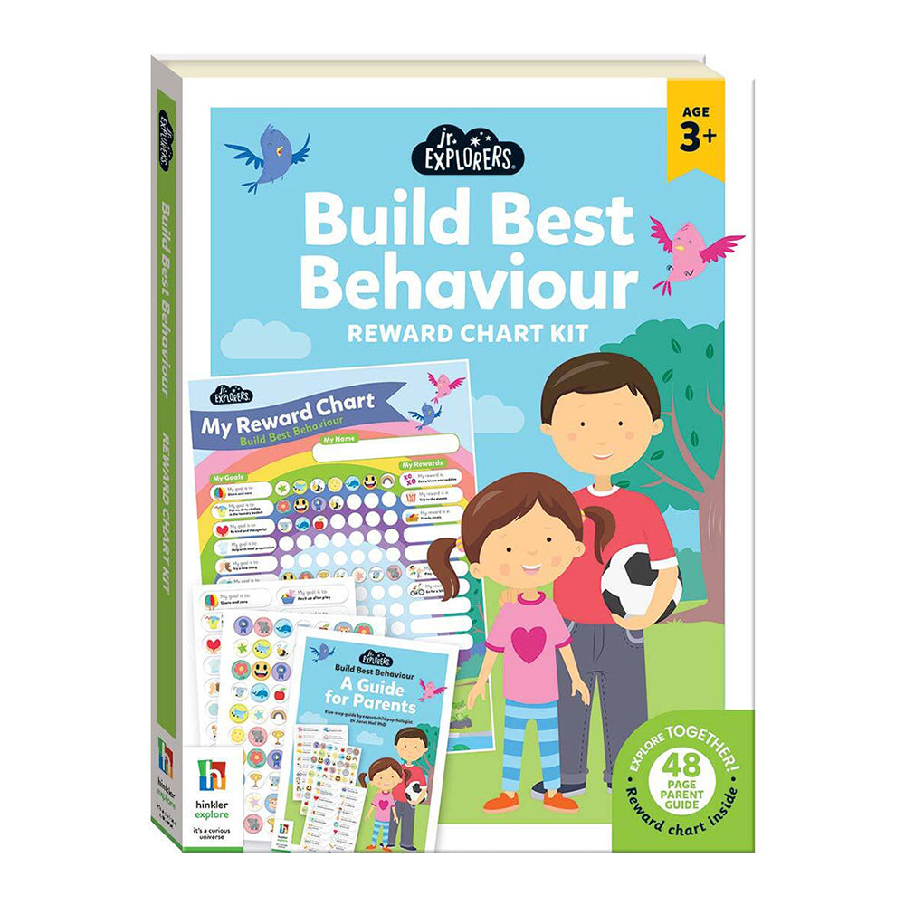 The Junior Explorers Build Best Behaviour Reward Chart Kit features specific parenting advice to help parents educate their children on topics such as learning life skills, helping at home, and caring for myself and others. This kit contains a large and engaging illustrated fold-out reward chart, 40 bright goal and reward stickers to encourage best behaviour, 20 blank goal and reward stickers to personalise for your child, 70 fun motivational stickers, an easy-to-follow 48-page instructional parent guide with helpful tips and proven methods for establishing best behaviour, and a customisable achievement certificate.