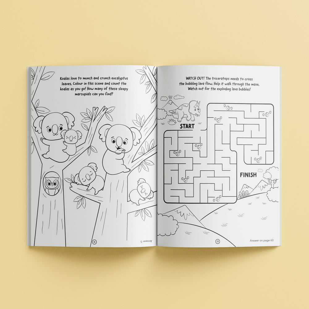 • Kit includes a 64-page colouring book, 64-page activity book, 20-card memory game, wipe-clean board with 2 pens, 6 coloured markers and a button badge.