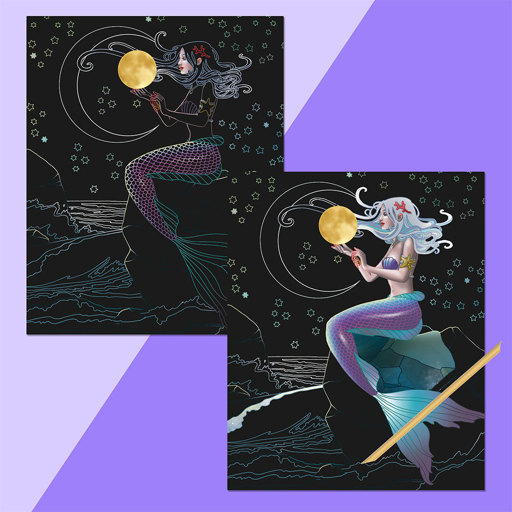 Art enthusiasts can scratch away all of the black layer, choose a few details to reveal and highlight or create their patterns, lines and dots on the beautiful scenes to be unveiled inside!
