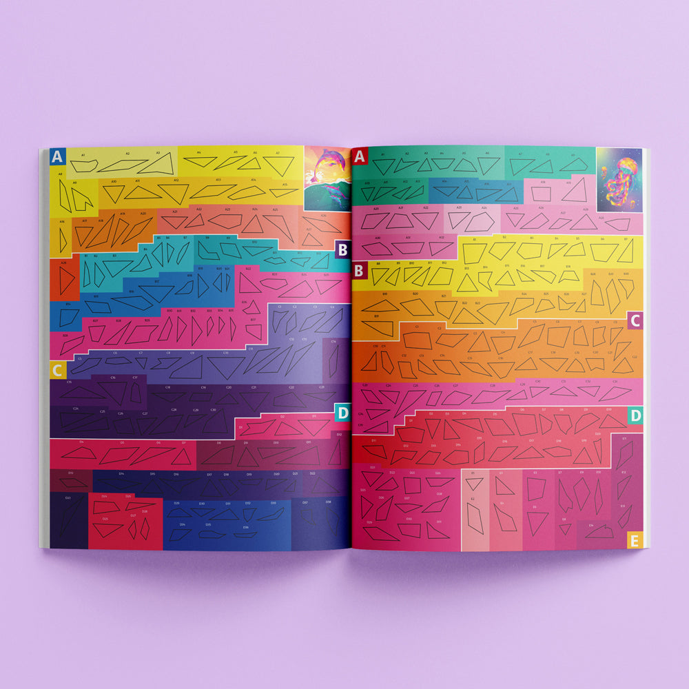 Immerse yourself in a bright world of intricate sticker art with Kaleidoscope Sticker Mosaics: Neon Ocean. Sticker art is the perfect activity for those who are interested in colouring books but are intimidated by the need to colour within the lines.
