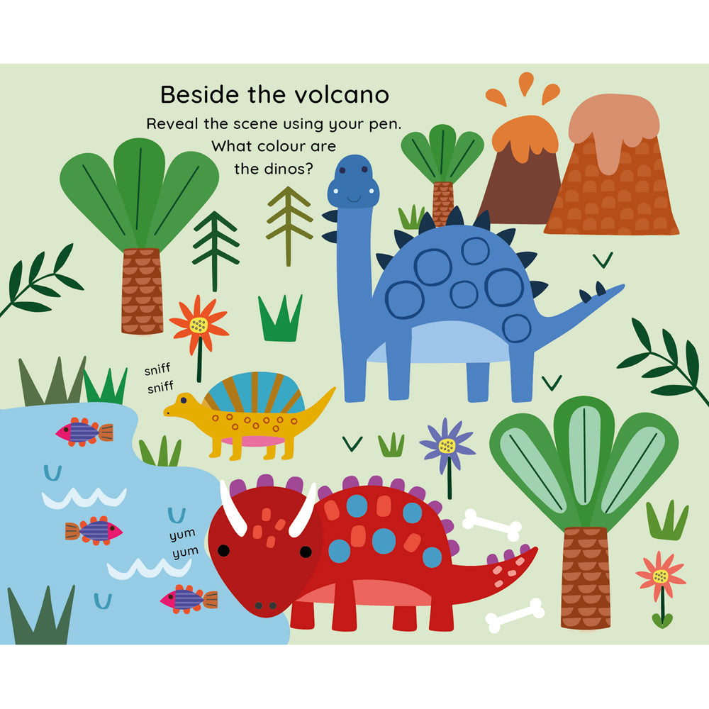 Fill the water pen with regular tap water, then draw to reveal the colour on the pages - it'll disappear when the water dries, then you can start again, just like magic!