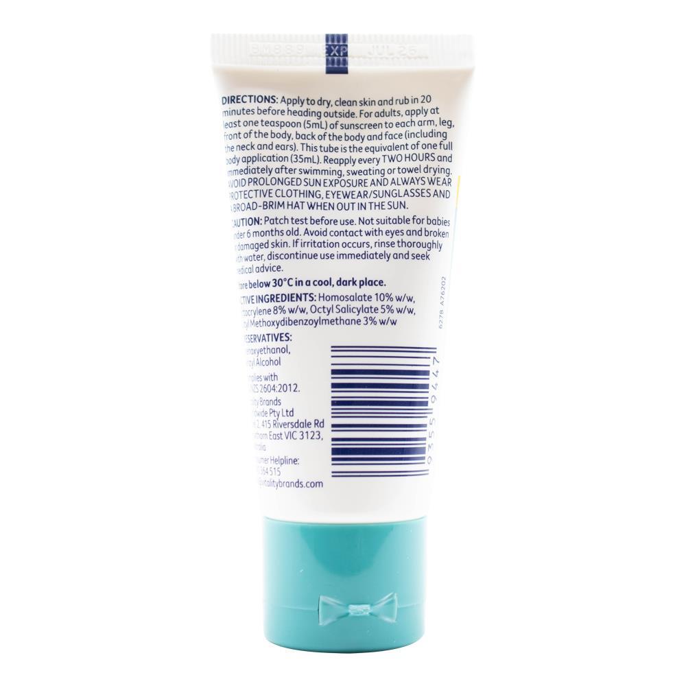 Apply to dry, clean skin and rub in 20 minutes before heading outside. On an average sized adult, approximately 35mL should be applied. This is the equivalent of 1 teaspoon of sunscreen to each arm, leg, front of body, back of body and face (including neck and ears).