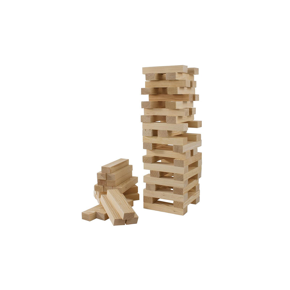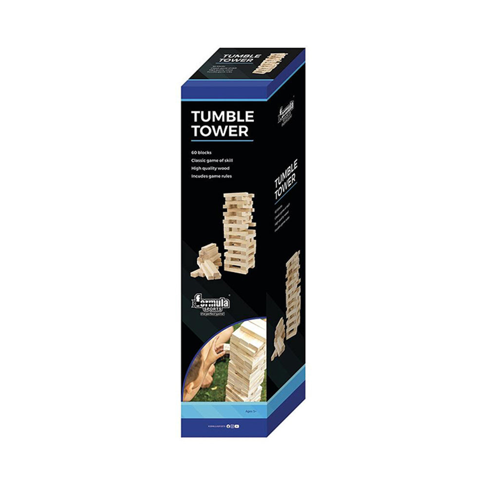 Formula Sports Tumble Tower has 60 large wood blocks; the aim of the game is to stack them up, 3 per row and try to remove a block from each row and then place it on top of the precariously unstable tower, creating another row of 3. This is a game of skill, analytics and exceptionally steady hands.