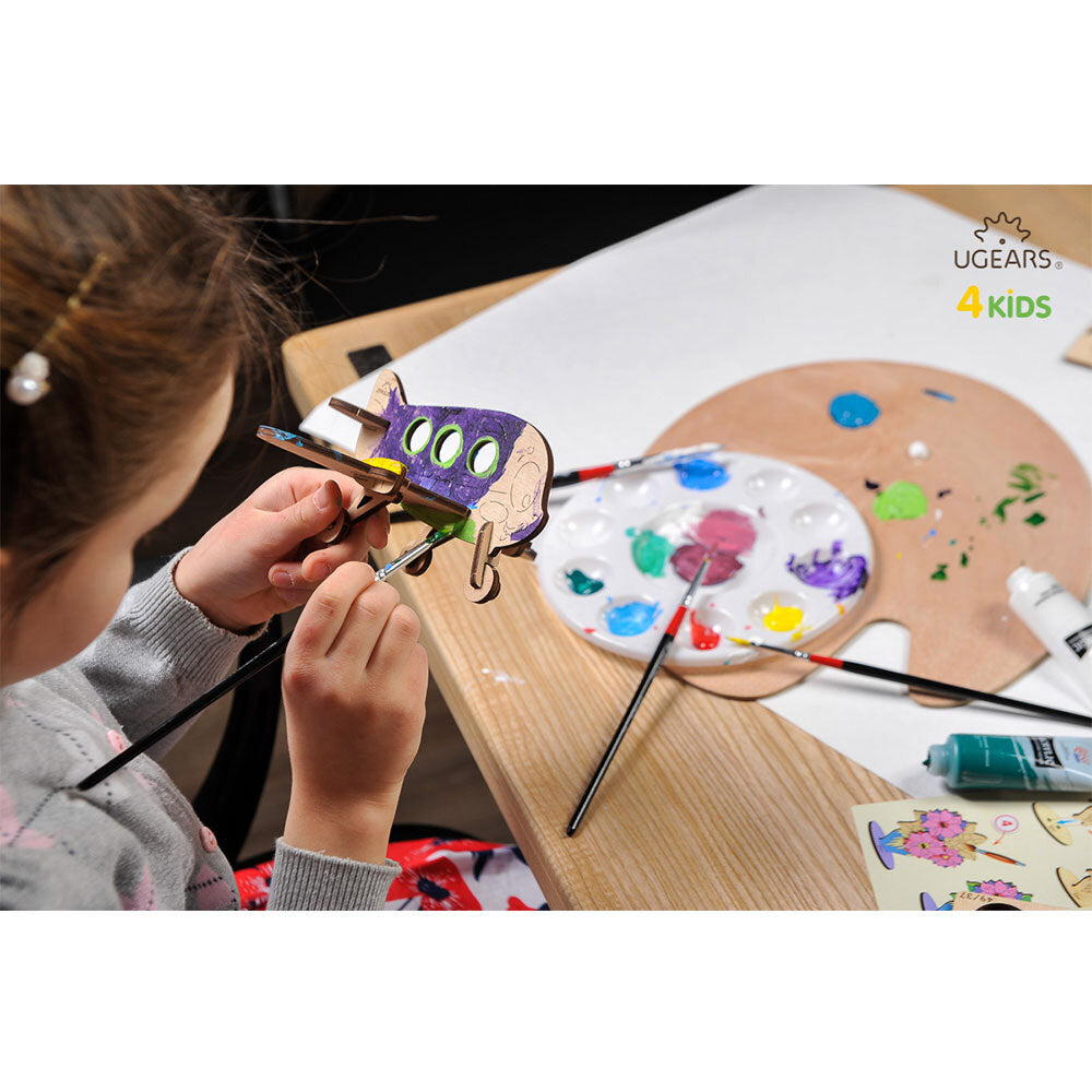 Ugears 4 Kids Airplane. To help your little one understand about planes, and to bring the plane magic home, this cute wood model is going to be perfect with its stellar design and fun shapes that will give your child lots to color or paint. Fun for the whole family.
