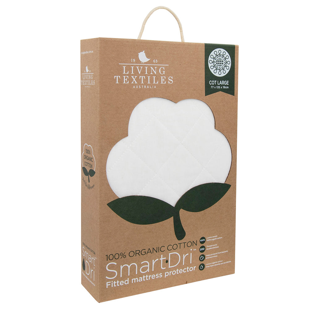 Made from luxurious 100% organic cotton, the Living Textiles Organic Smart-Dri waterproof mattress protector helps create a dry and healthy sleep zone for your precious little one Certified according to Standard 100 by OEKO-TEX, you can sleep easy knowing that our mattress protectors are tested and verified as free from harmful levels of more than 300 substances.